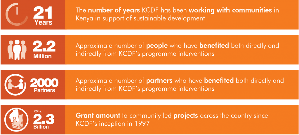 KCDF is a Kenyan development, founded and registered in 1997 as a public foundation, that supports communities to initiate and drive their development agenda by harnessing and growing their resources as well as securing their basic rights and services from duty bearers.